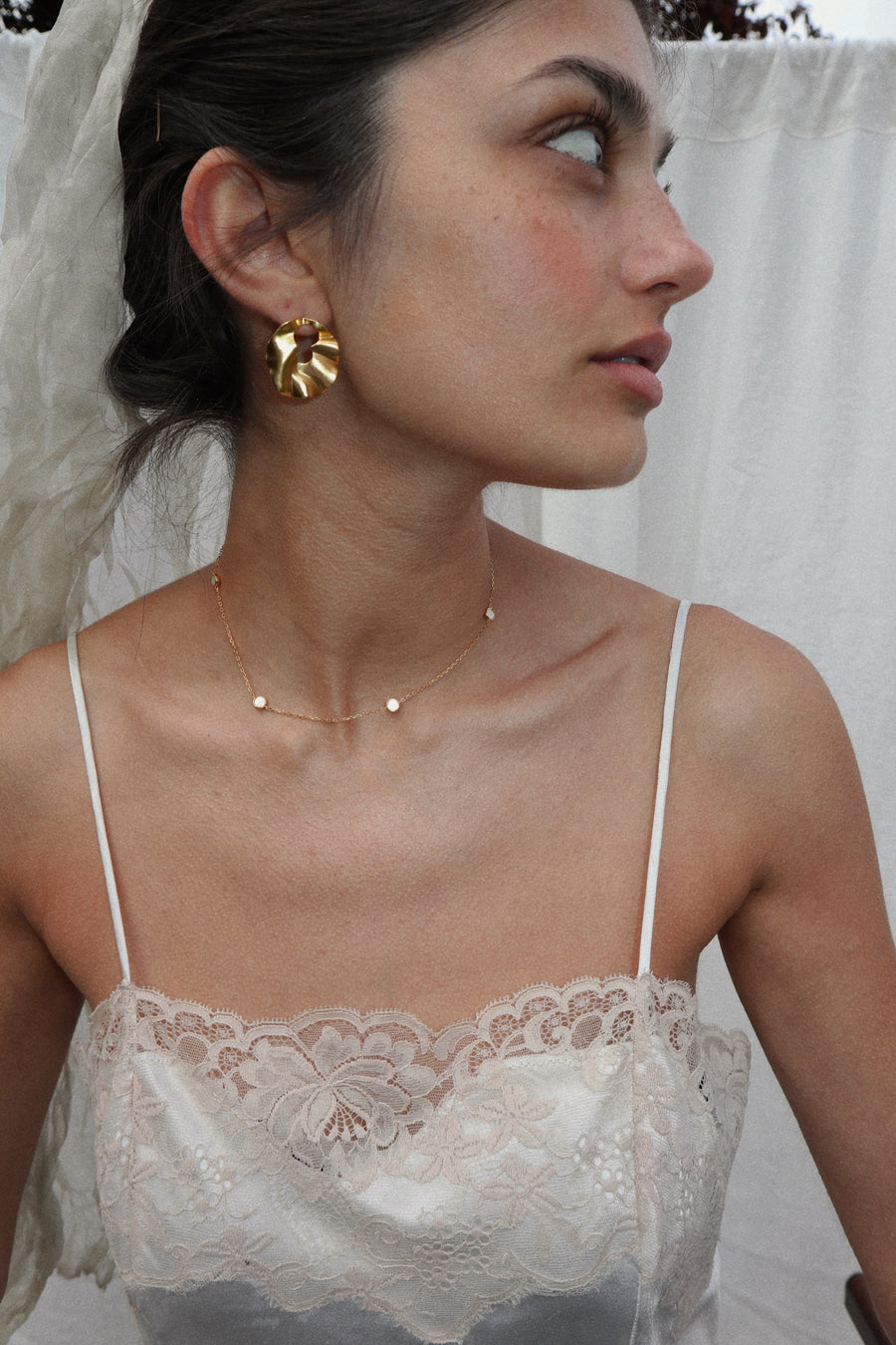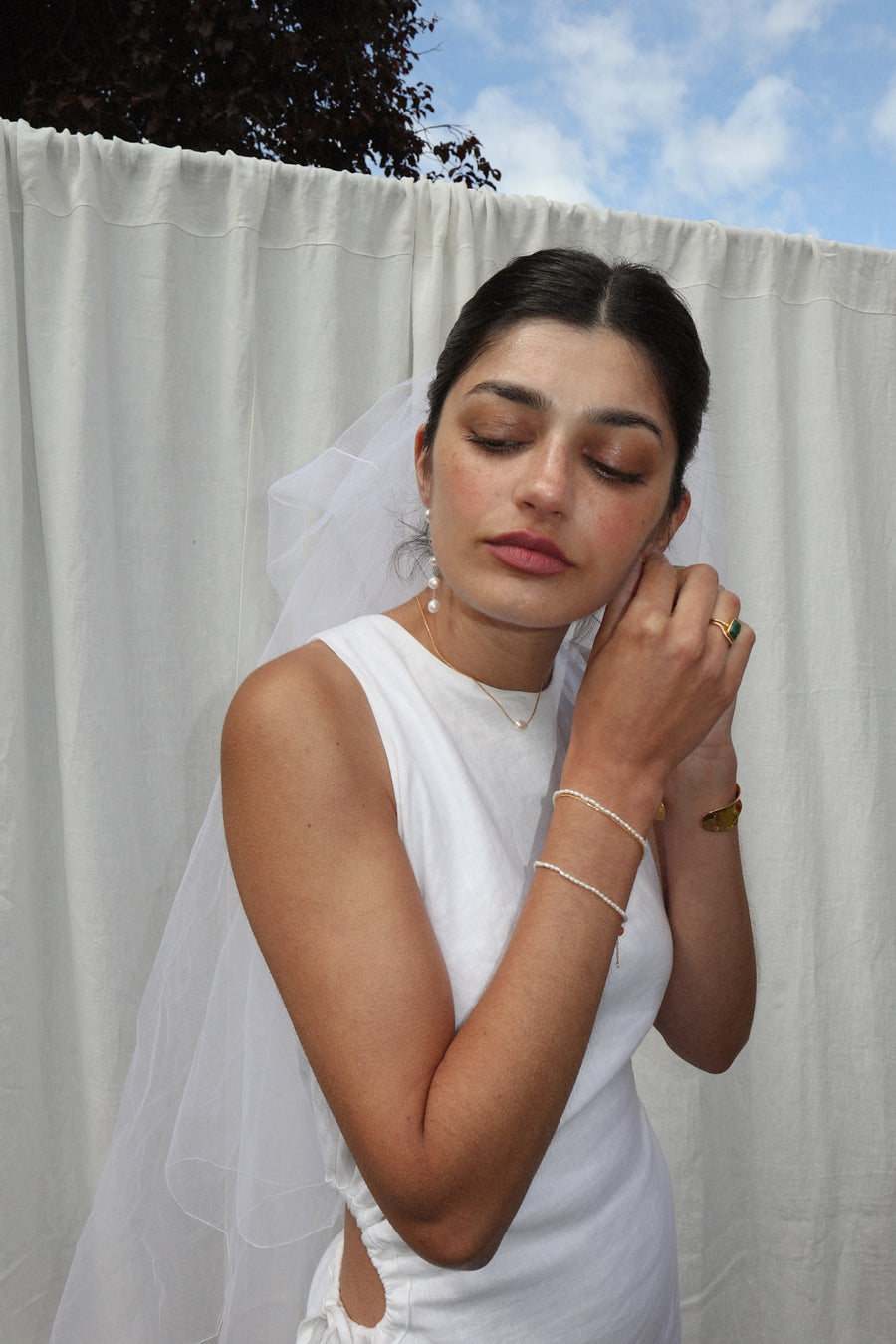 A MINIMALIST BRIDE, DRAWN TO ARCHITECTURAL SHAPES + CLEAN LINES. THE LOVE OF HER MOTHER'S PEARLS NEVER LEFT, SO NATURALLY THEY WERE HER CHOICE TODAY.