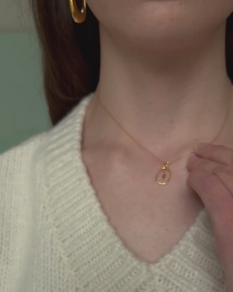 Necklace can be worn in two ways- chain suspended on small bail loop or through larger oval.