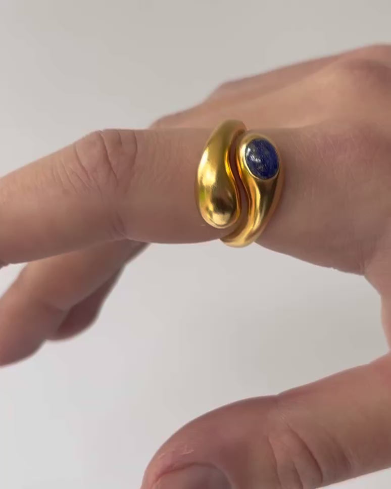 Where the depth of Lapis Lazuli meets everyday design, the Lars Ring brings weight and intention to your hand. A smooth, unpolished domed band wraps around the finger, holding an oval cabochon lapis stone embedded in its curve. Lars is bold but calm in its presence - connecting your inner calm to wherever life brings you.